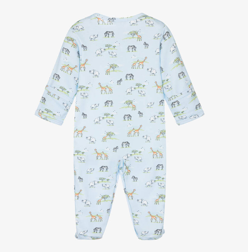 Made in beautifully soft Pima cotton jersey for ultimate comfort. Styled with a round neckline and enclosed feet, this cute one-piece is patterned with white clouds and friendly jungle animals. Snaps down the front and between the legs for easy changing. Add the Jungle Oasis blanket for an ideal baby present.