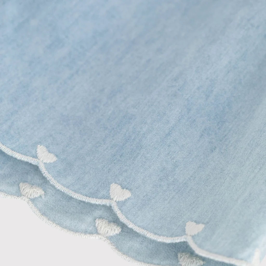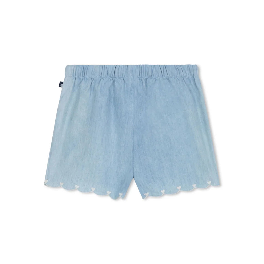 Adorable cotton chambray scallop hemmed shorts from Petit Bateau.  Match back with the chambray blouse or pair with a simple white tee.