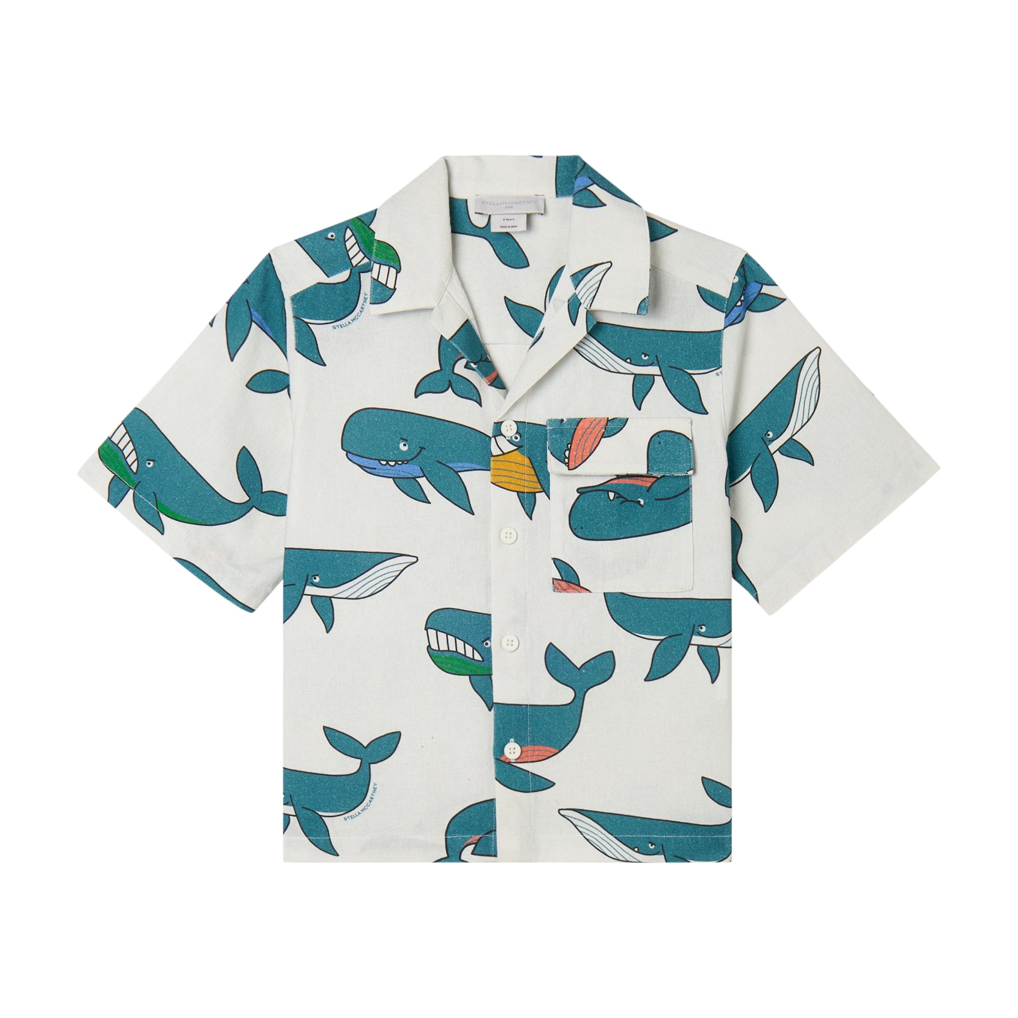 Featuring an all-over whale print, this short-sleeve shirt brings a playful, ocean-inspired mood to warm-weather dressing. Crafted from organic cotton, the woven construction offers a lightweight, breathable feel that works well for everyday wear. Balancing comfort with expressive design, it reflects this season’s joyful storytelling and relaxed approach to Spring Summer 2026 style.