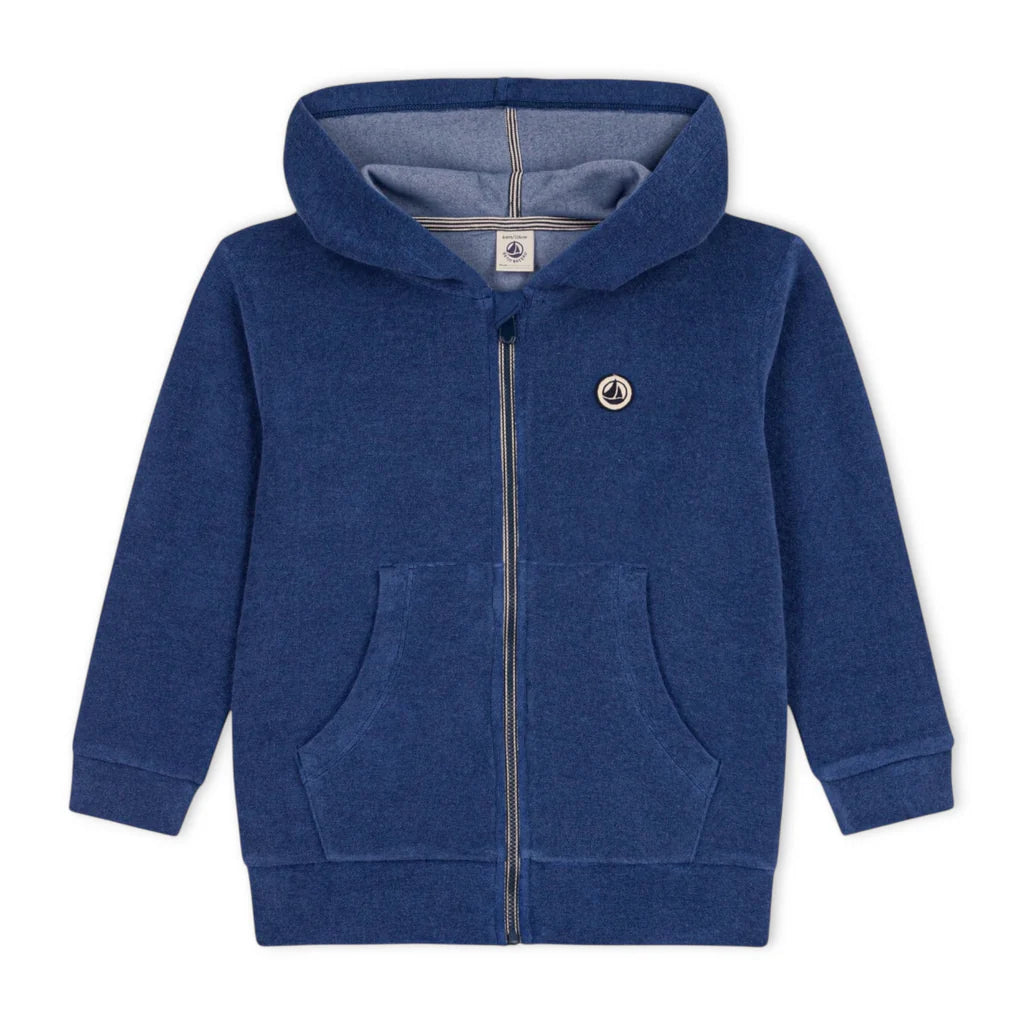 Cozy terry zip hoodie from Petit Bateau. Stripe hood. Matches great with the terry shorts for cool summer evenings.