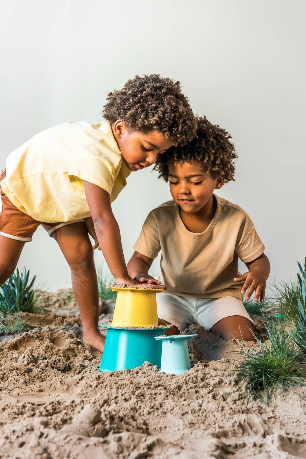 The Alto is a three-part, stackable toy inspired by professional sand-builders. Its small, medium, and large components help kids create sturdy structures with ease—no extra buckets needed. Build towers, castles, or sand villages, then enjoy easy clean-up and transport with its click-and-stack design! Award winning toy: Red Dot award winner 2014 Includes 3 sizes : small, medium and large.